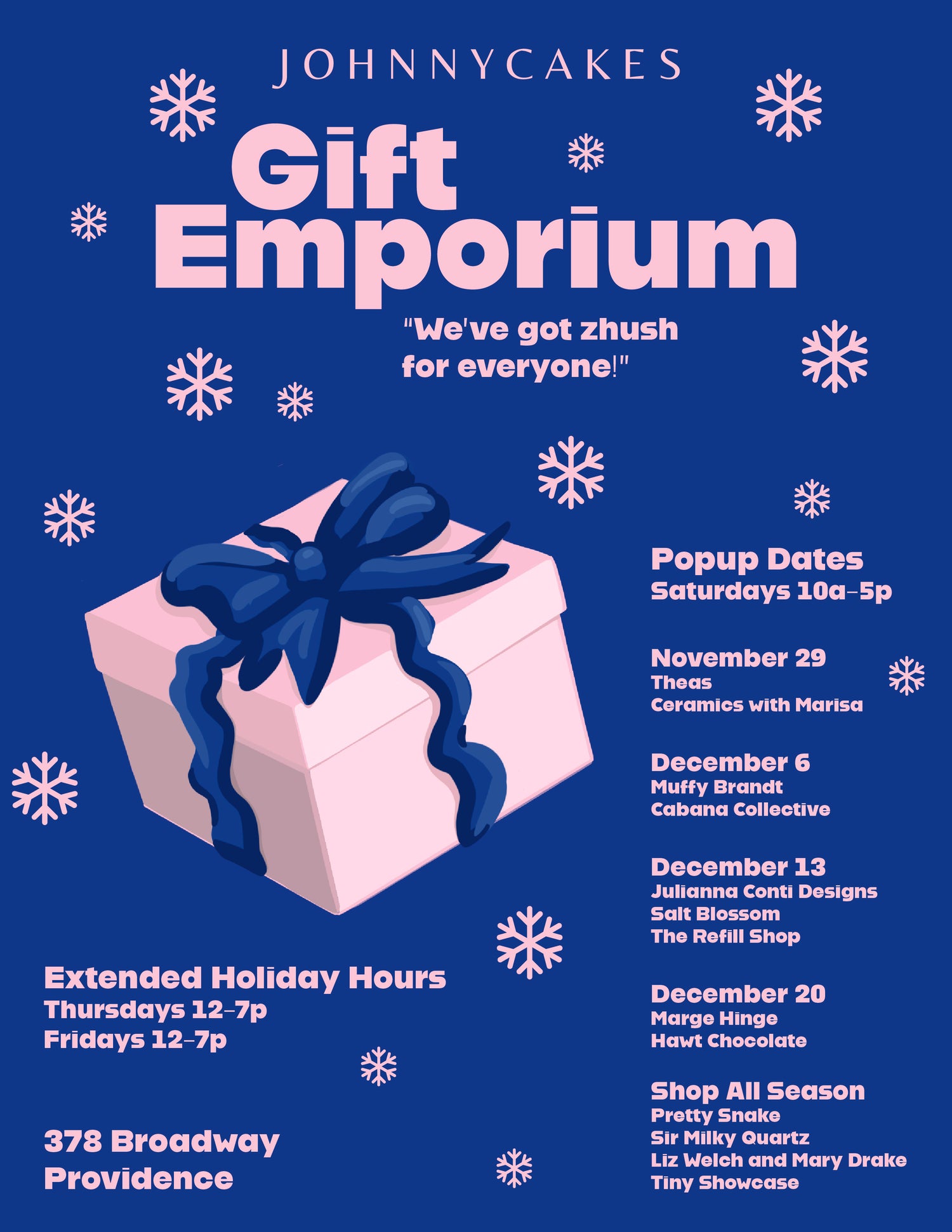 Zhush up your holiday gifting! Shop special popup brands in-store every Saturday until 12/20. We also have a special selection of goods and extended shopping hours available - no more boring gift cards from the checkout aisle!