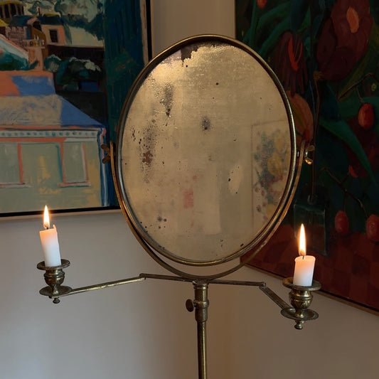 Antique Brass Shaving Mirror with Candleabra