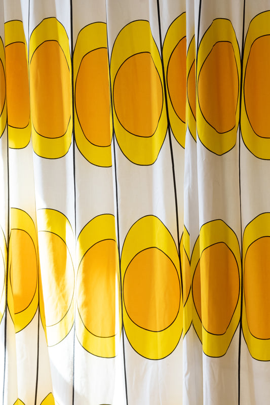 Vintage Mid Mod 'Egg' Pattern Pleated Drape Panel in Yellow/Orange