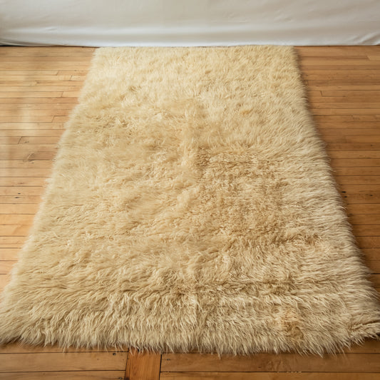 Vintage Greek Flokati Felted Wool Rug in Cream