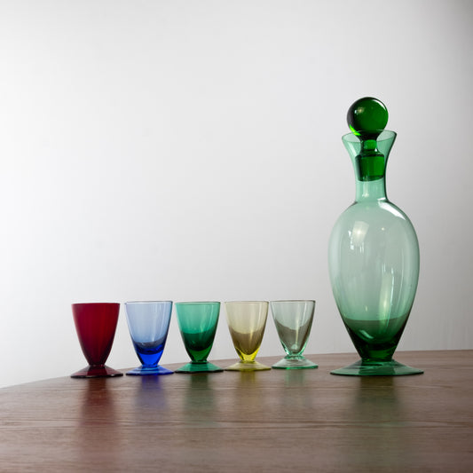 Jewel Tone Glass Cordial Decanter & Glass Set