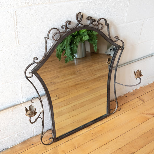Antique Wrought Iron Mirror with Floral Candle Sconces
