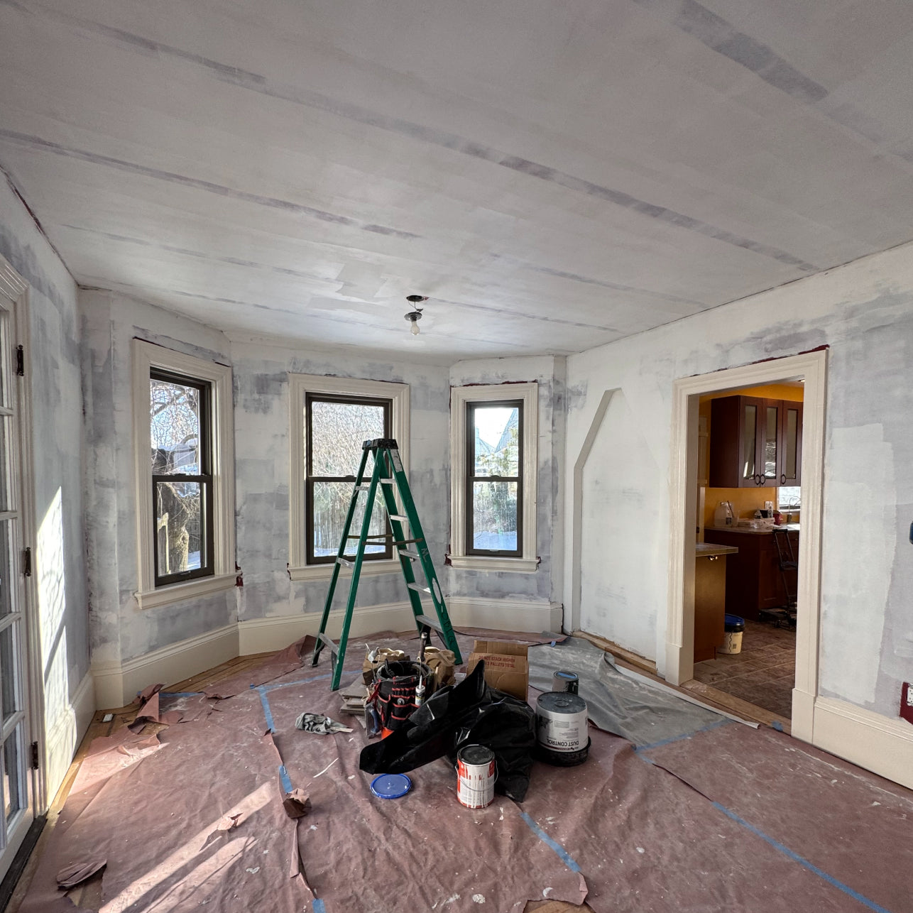 The Client originally contacted JohnnyCakes for a simple color consultation for the home they just bought. During a walkthrough we were able to help the client identify issues that needed addressing before aesthetic work could be done. We were able to assemble the right team to address issues such as water damage, plaster damage, floor damage, window damage, and major updates to lighting. We infused the Client's style while preserving the historic qualities of the home including a gorgeous stained glass window and original pine moulding. The result is a home that is ready for another 100 years.