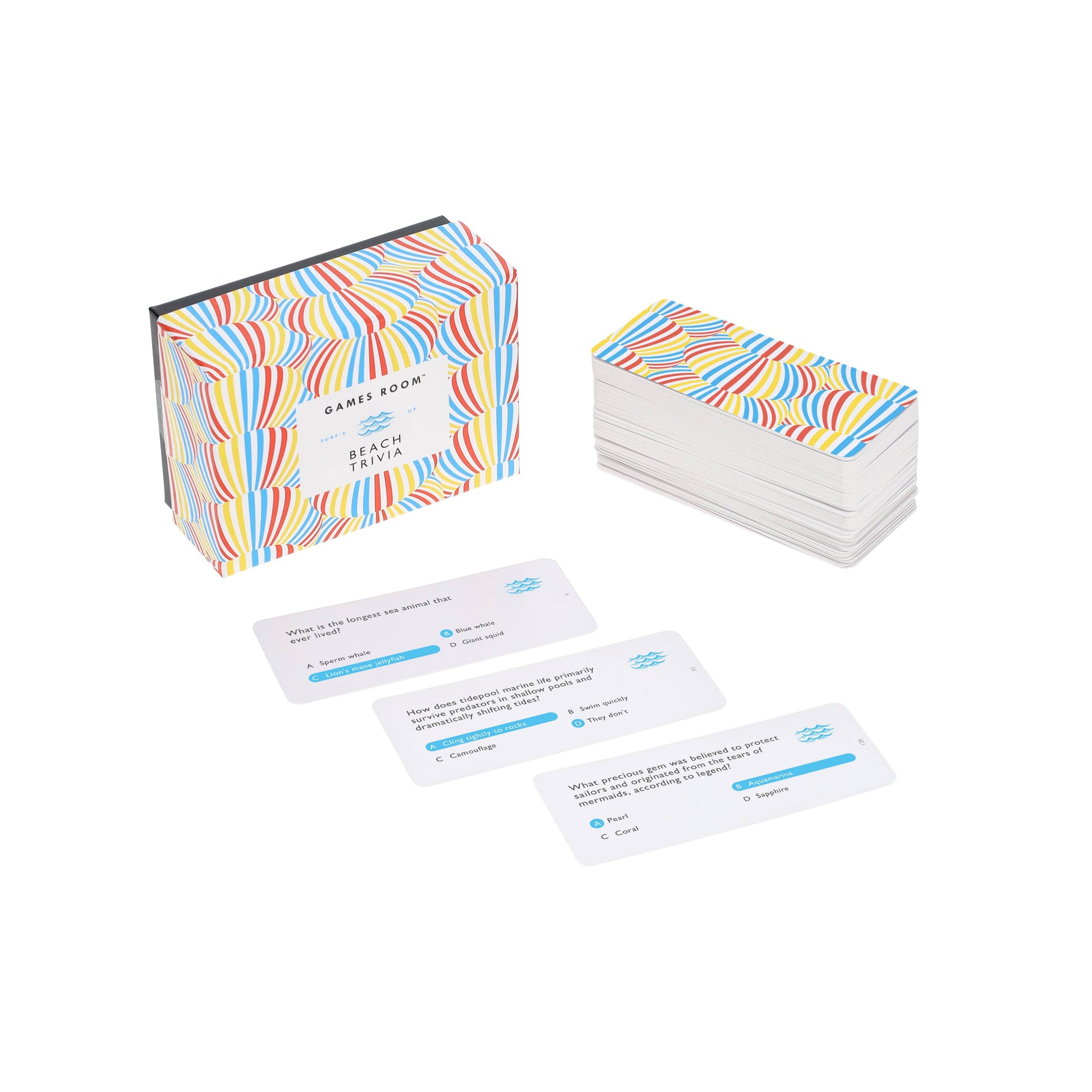 With 140 beach-centric trivia questions in a gorgeous and portable box, feel that ocean breeze no matter where you are. These multiple-choice questions cover all sun-sand-and-shore topics - from science and history to pop culture and fun facts.