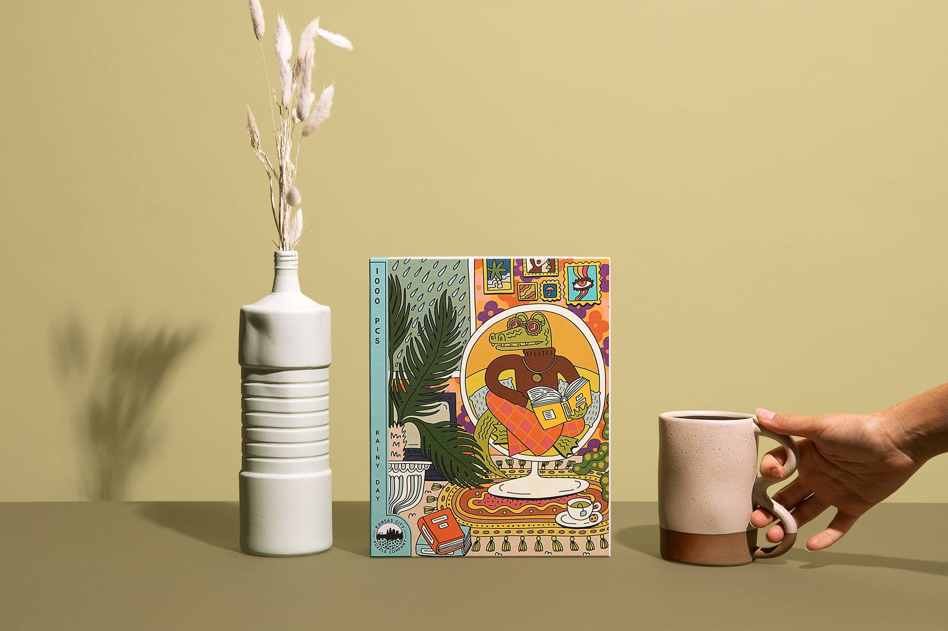 Nostalgic, moody and vibrant, this puzzle is filled with the unique color work and funky, cool art that artist Emily M. Reay is loved for. A modern joy in 1,000 illustrated pieces! Made in the USA of high quality and durable Blue Kappa chipboard, soft touch puzzle finish, soy based inks and 100% recycled materials. You'll enjoy this puzzle for years.