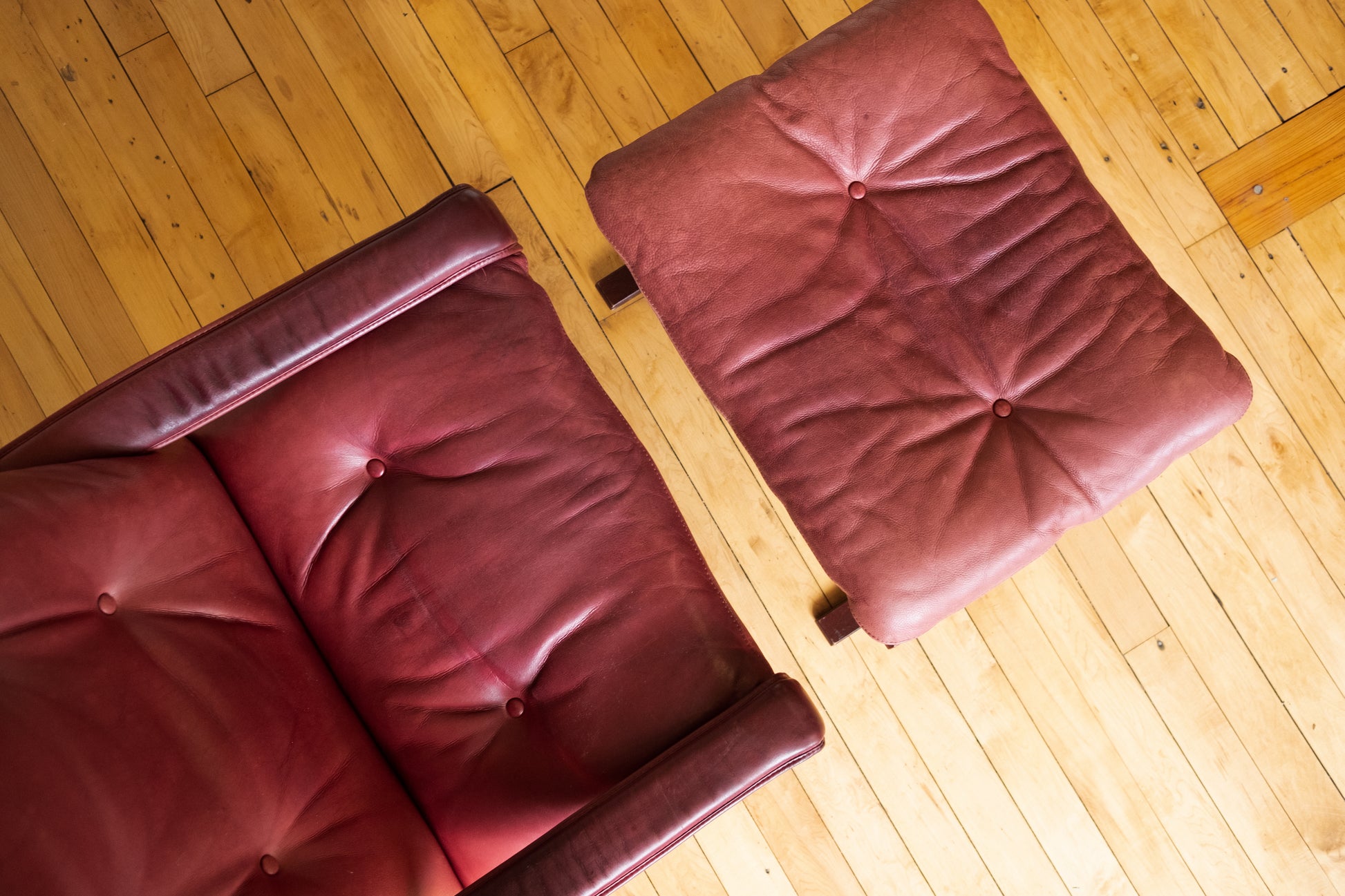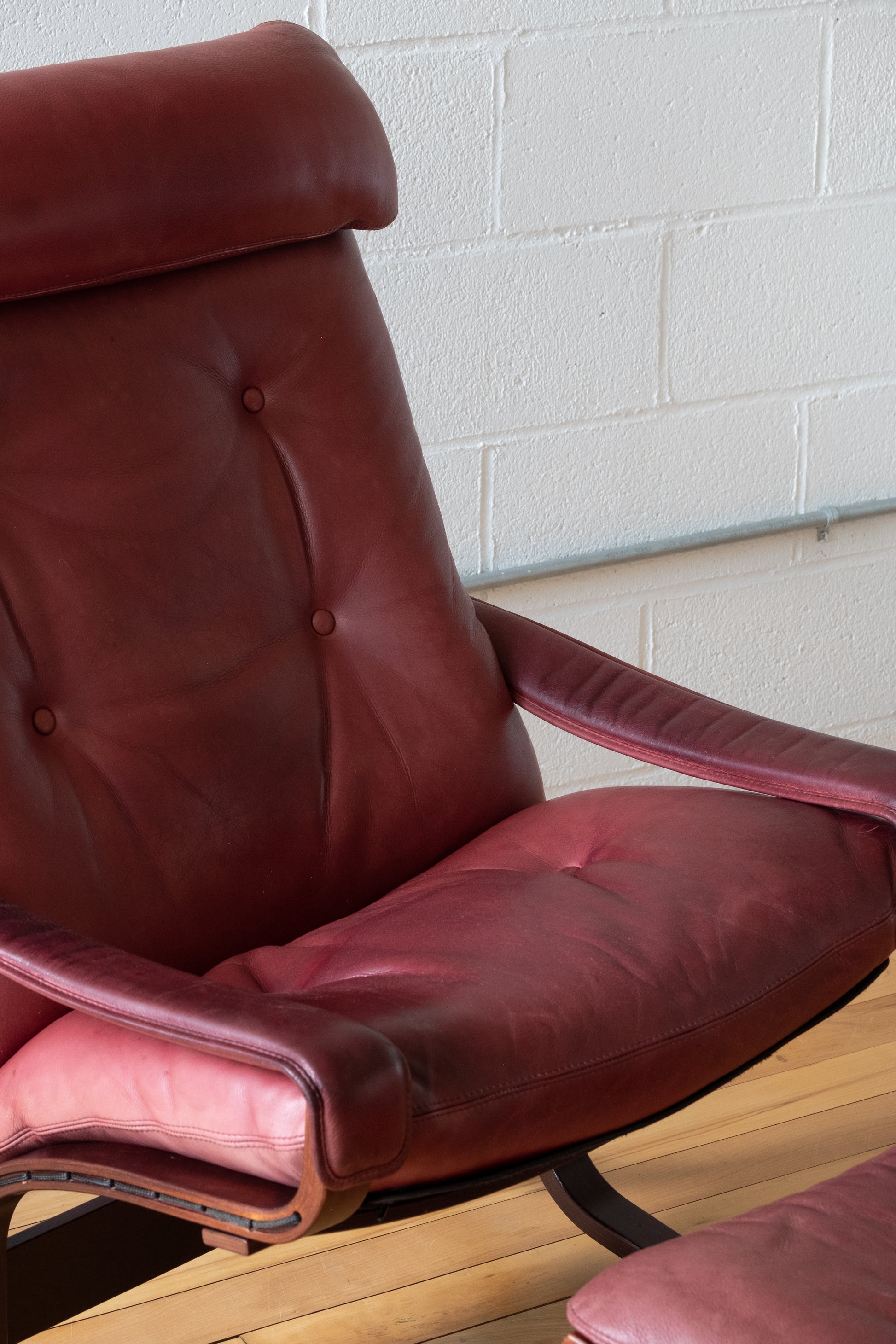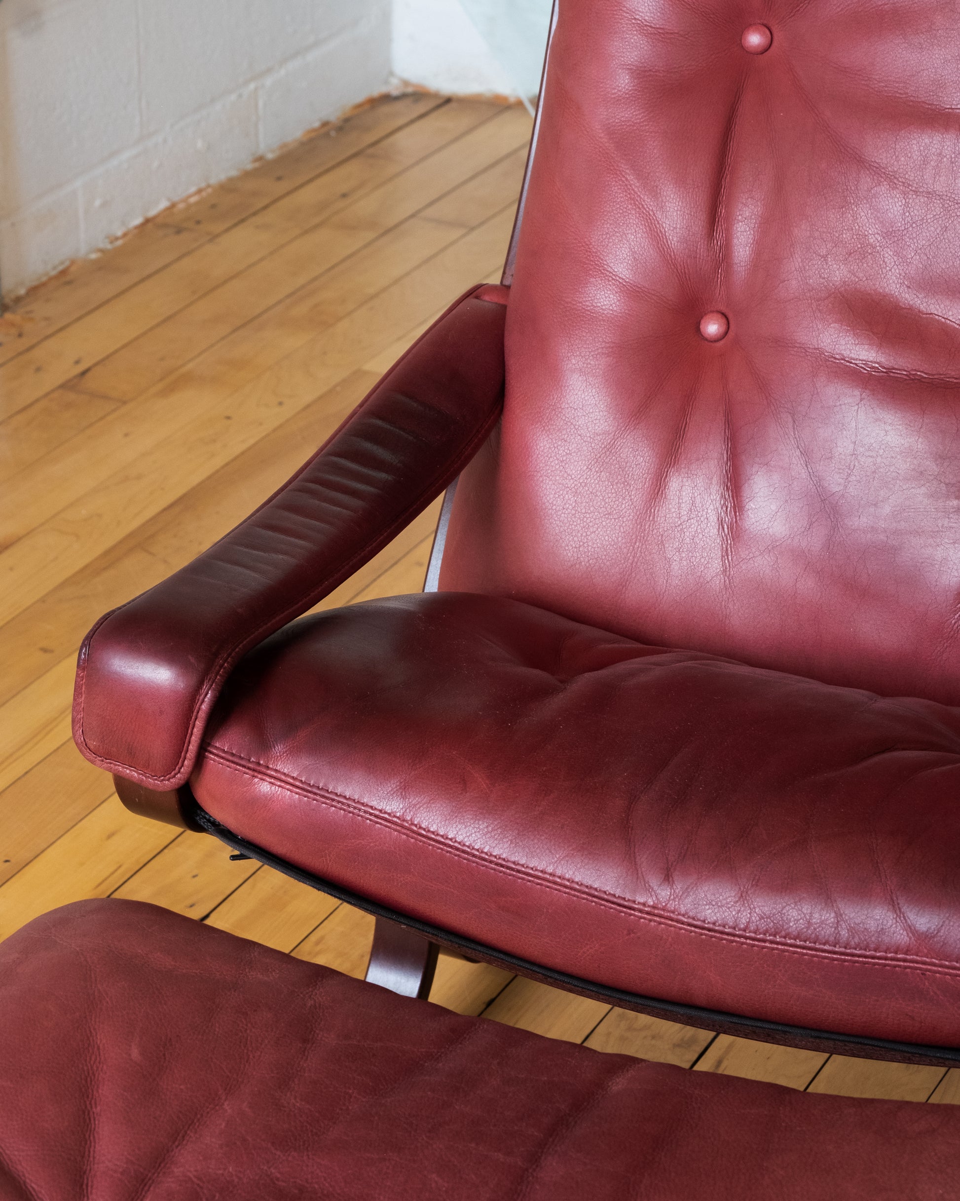 Westnofa "Siesta" Lounge Chair and Ottoman in Rouge Leather